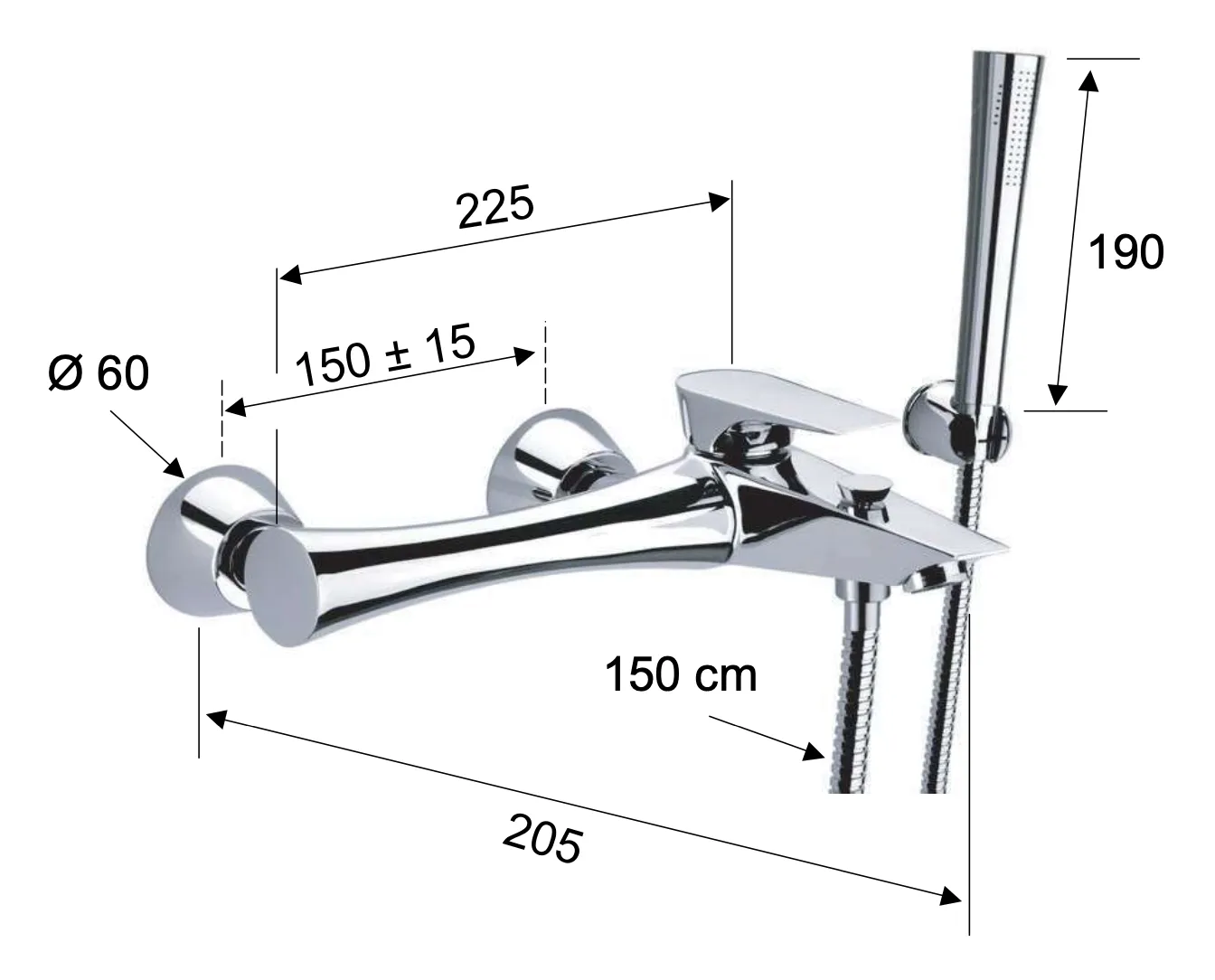 Смеситель для ванны Daniel Diva DV61015, чёрный матовый