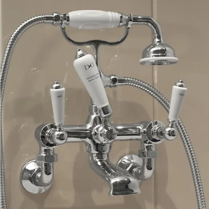 Смеситель для ванны Devon&Devon Dandy монтаж на стену без эксцентриков - межосевое расстояние 194мм с лейкой и шлангом хром MARF40MCR