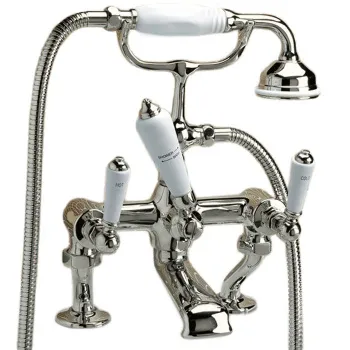 Смеситель для ванны Devon&Devon Dandy монтаж на стену без эксцентриков - межосевое расстояние 194мм с лейкой и шлангом никель блестящий MARF40BNKS