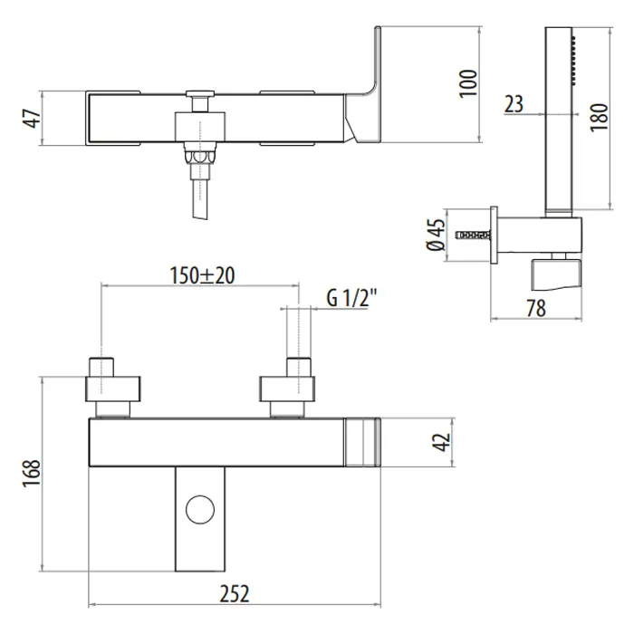 Смеситель для ванны/душа встраиваемый с ручной лейкой Gattoni Kubik, nero opaco 2500/25NO