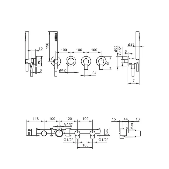 Смеситель для ванны Fantini Al/23 встраиваемый, на 2 источника, без излива, наружная часть, хром 26 02 B717B