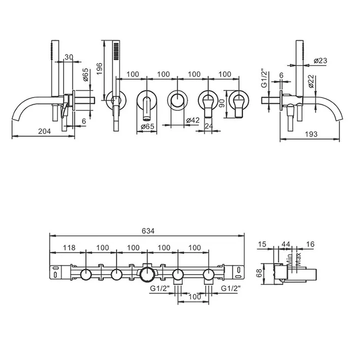 Смеситель для ванны Fantini Al/23 встраиваемый, на 2 источника, излив 190, наружная часть, хром 26 02 B719B