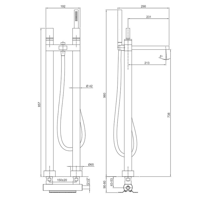 Смеситель для ванны Fantini Venezia In напольный, с ручн душем, излив 215, наружная часть, Nickel PVD 29 95 N580SB