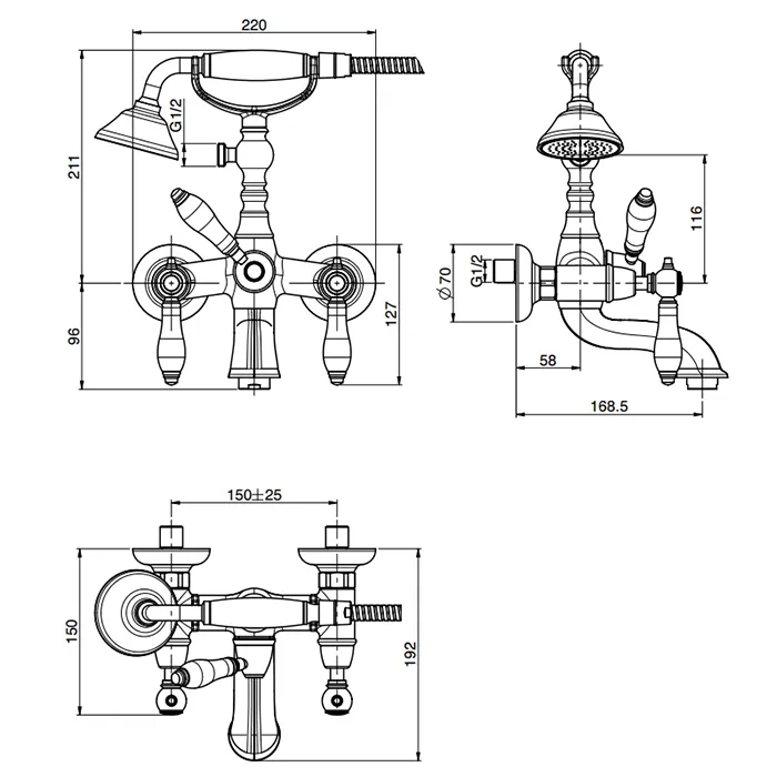 Смеситель для ванны Fima Carlo Frattini Herend настенный, с ручным душем., черные ручки, хром F5404CNCR