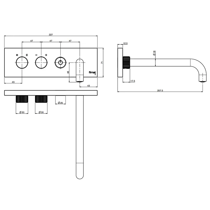 Смеситель для ванны Fima Carlo Frattini Outdoor встраиваемый, с кнопкой on/off, излив 20.7, нержавеющая сталь F5951LX5/180SINOX