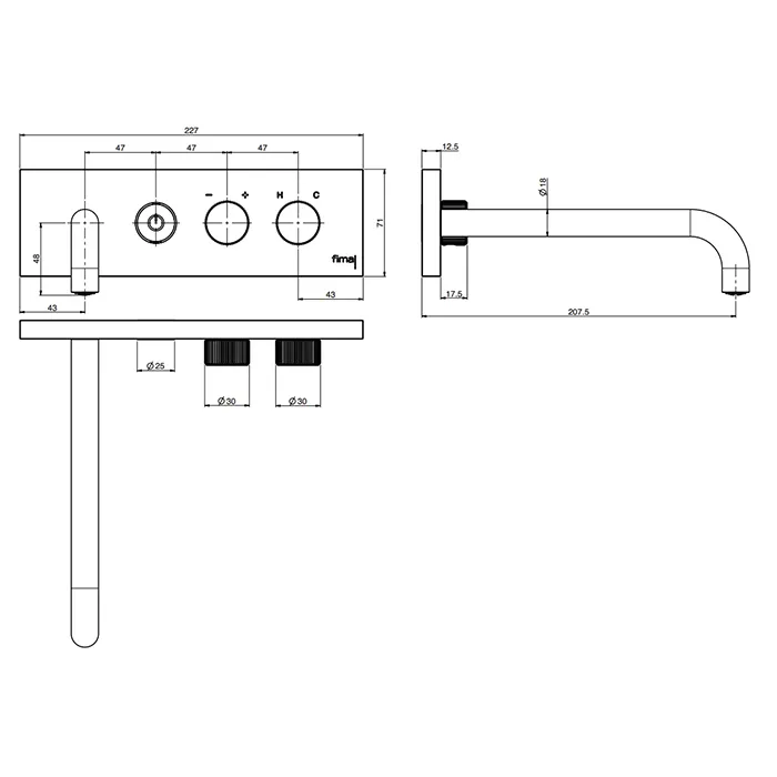 Смеситель для ванны Fima Carlo Frattini Outdoor встраиваемый, с кнопкой on/off, излив 20.7, нержавеющая сталь F5951LX5SINOX