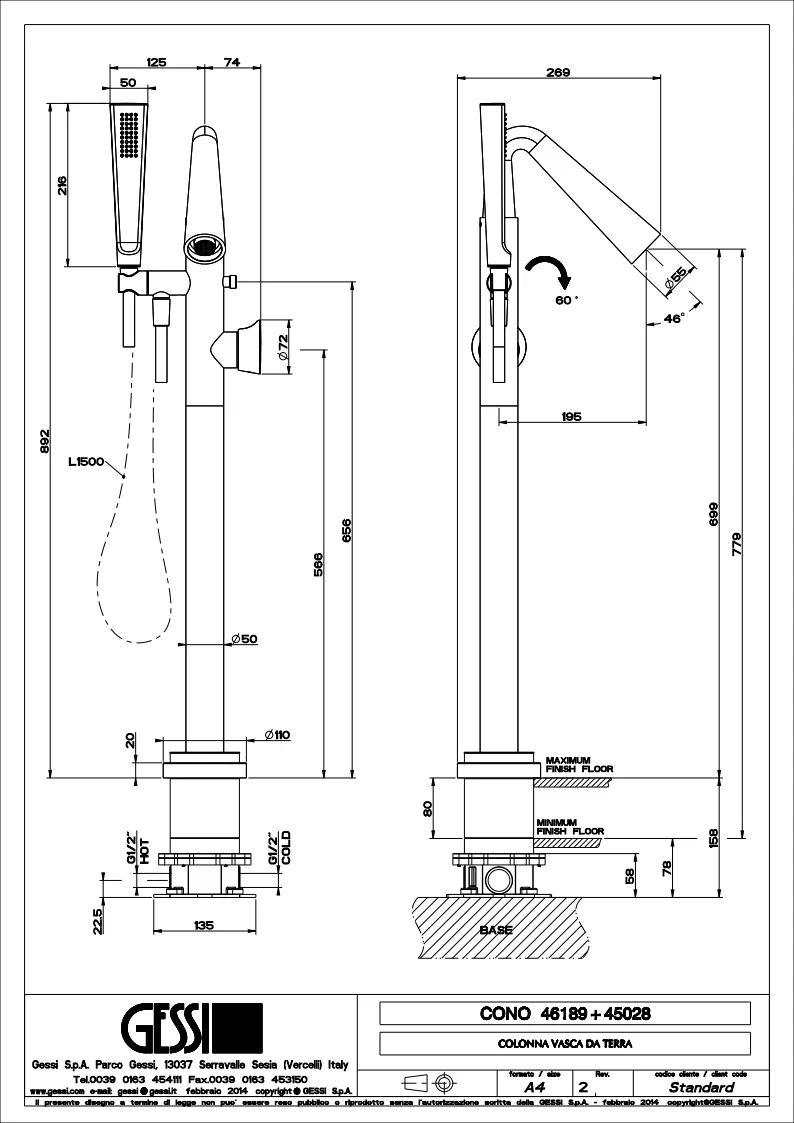 Смеситель для ванны Gessi 45028.030 Copper PVD