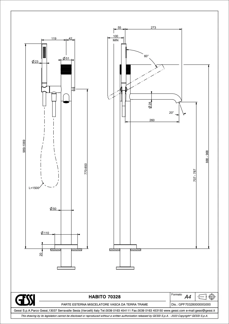 Смеситель для ванны Gessi 70328.149 Finox Brushed Nickel