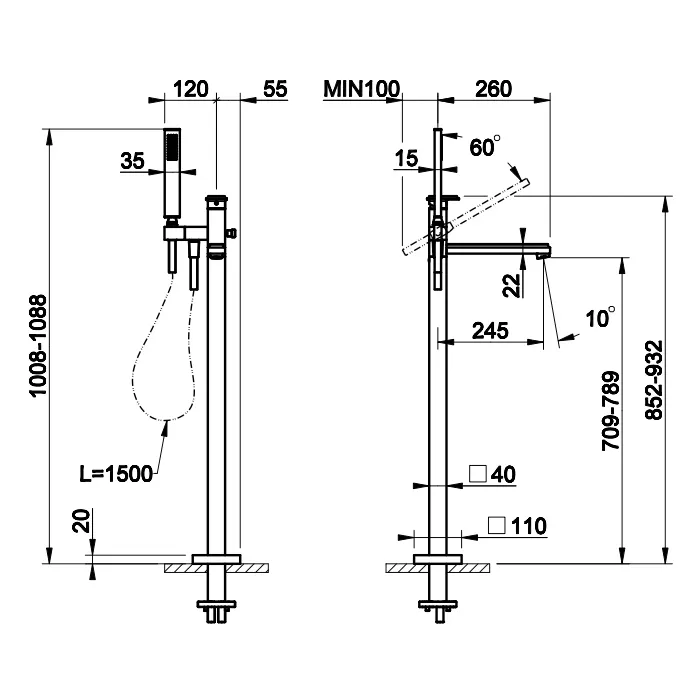 Смеситель для ванны Gessi Eleganza 46131.713 Antique Brass