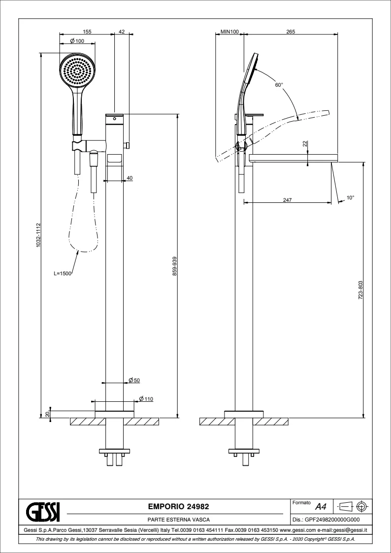 Смеситель для ванны Gessi Emporio Via manzoni 24982.299 Matte Black