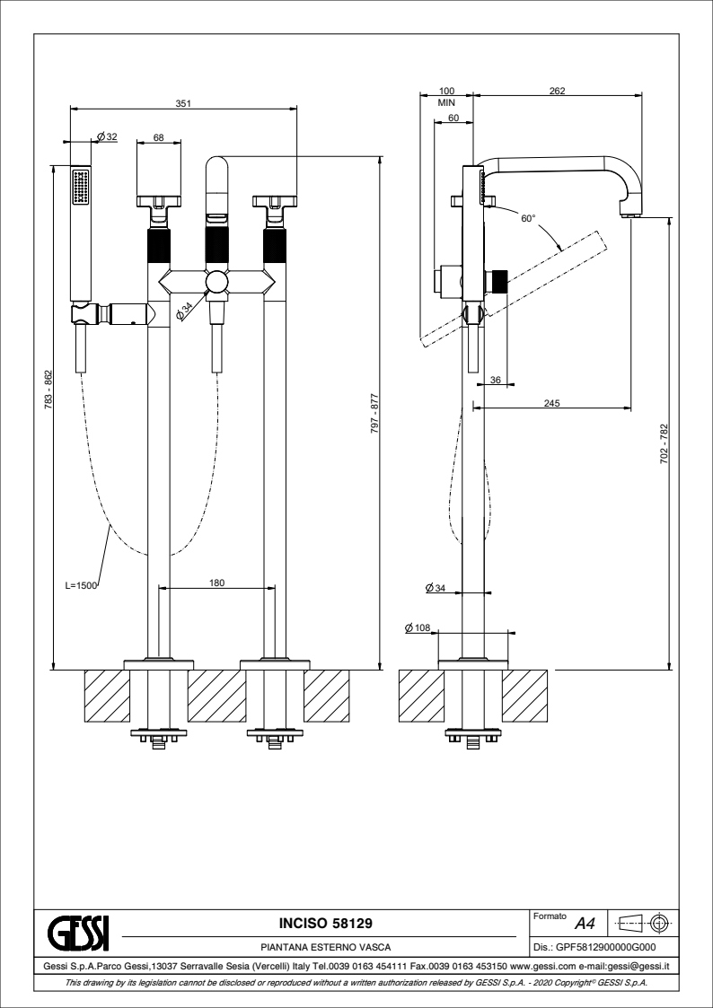 Смеситель для ванны Gessi Inciso 58129.727 Brass Brushed PVD