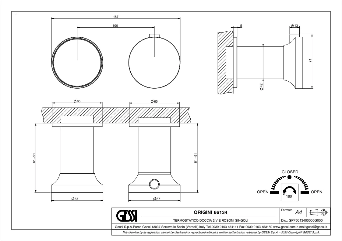 Смеситель для ванны Gessi Origini 66134.708 Copper Brushed PVD