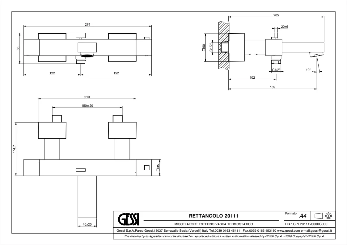 Смеситель для ванны Gessi Rettangolo 20111.031 Chrome