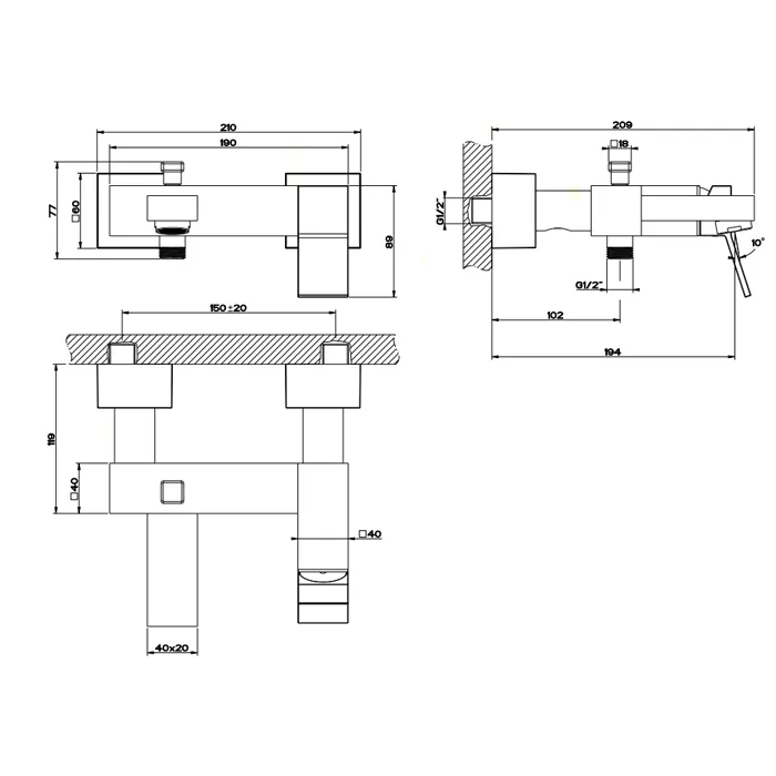 Смеситель для ванны Gessi Rettangolo K 53013.031 Chrome