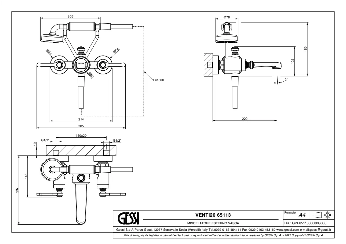 Смеситель для ванны Gessi Venti20 65113.031 Chrome