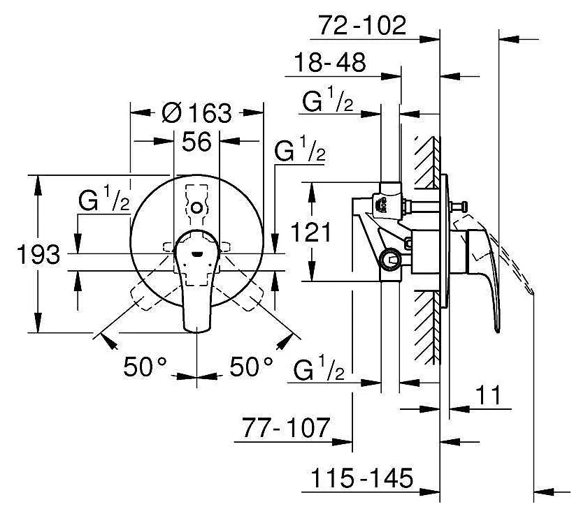 33305003 Eurosmart Смеситель для ванны встраиваемый (замена 33305002)