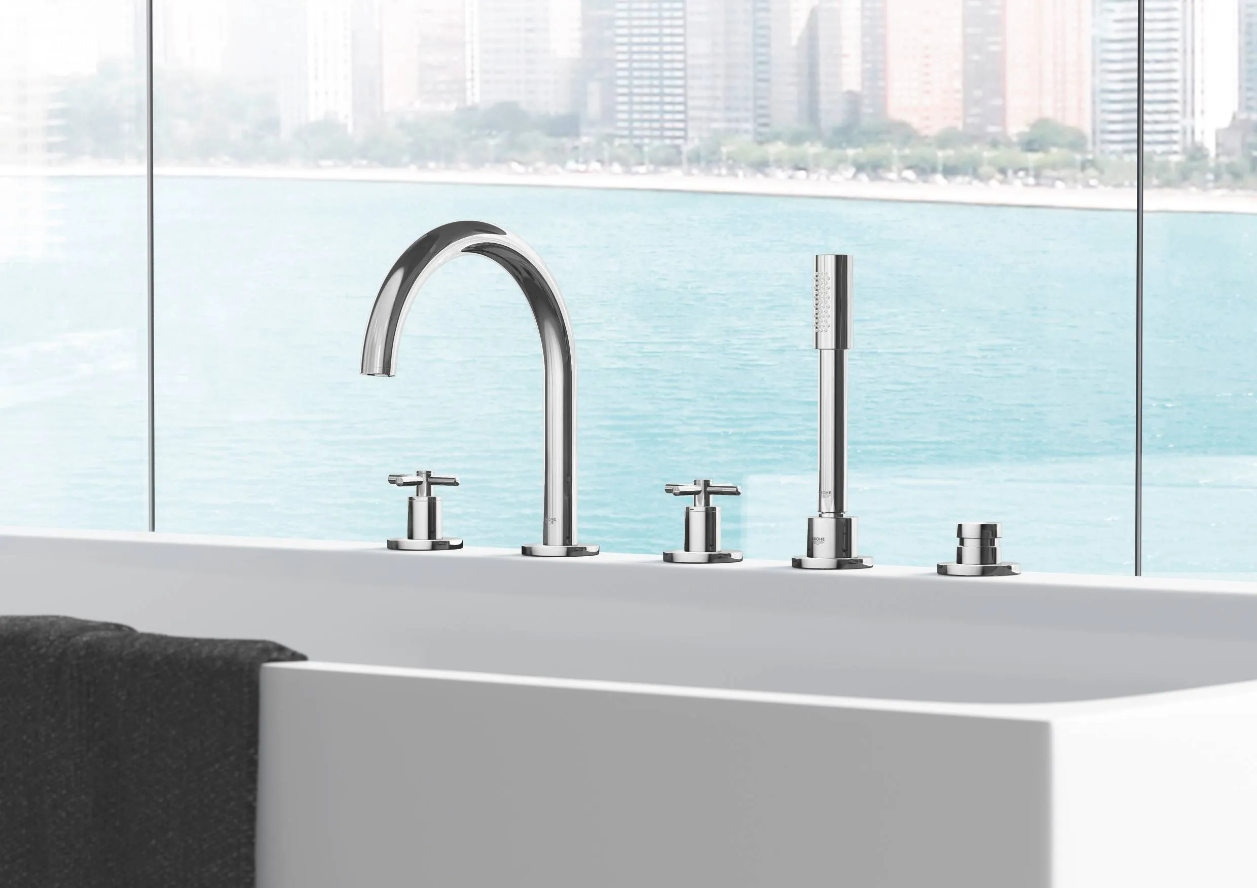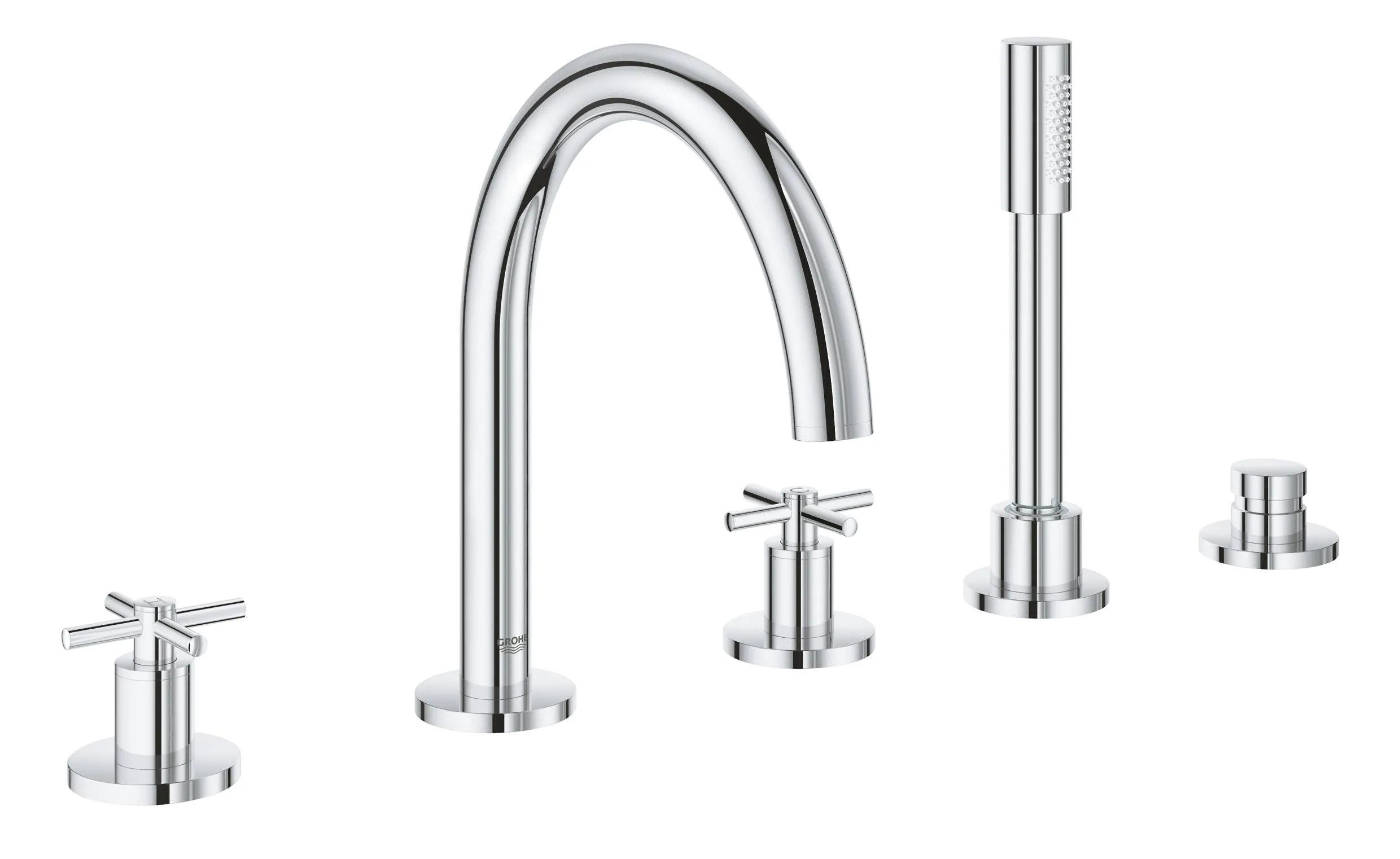 Смеситель для ванны GROHE Atrio New с душевым гарнитуром на бортик ванны, 5 отверстий, хром 19923003