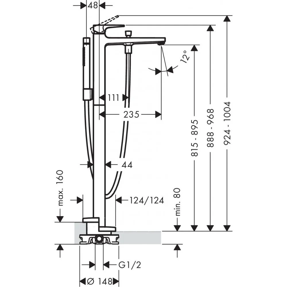 32532700S Set HG Metropol смеситель для ванны напольный (32532700+10452180), матовый белый