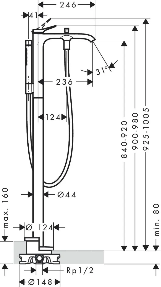 75445670S Set HG Vivenis смеситель для ванны напольный (75445670+10452180), матовый черный
