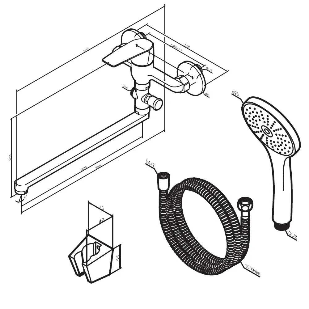 - Размер ручного душа: 95