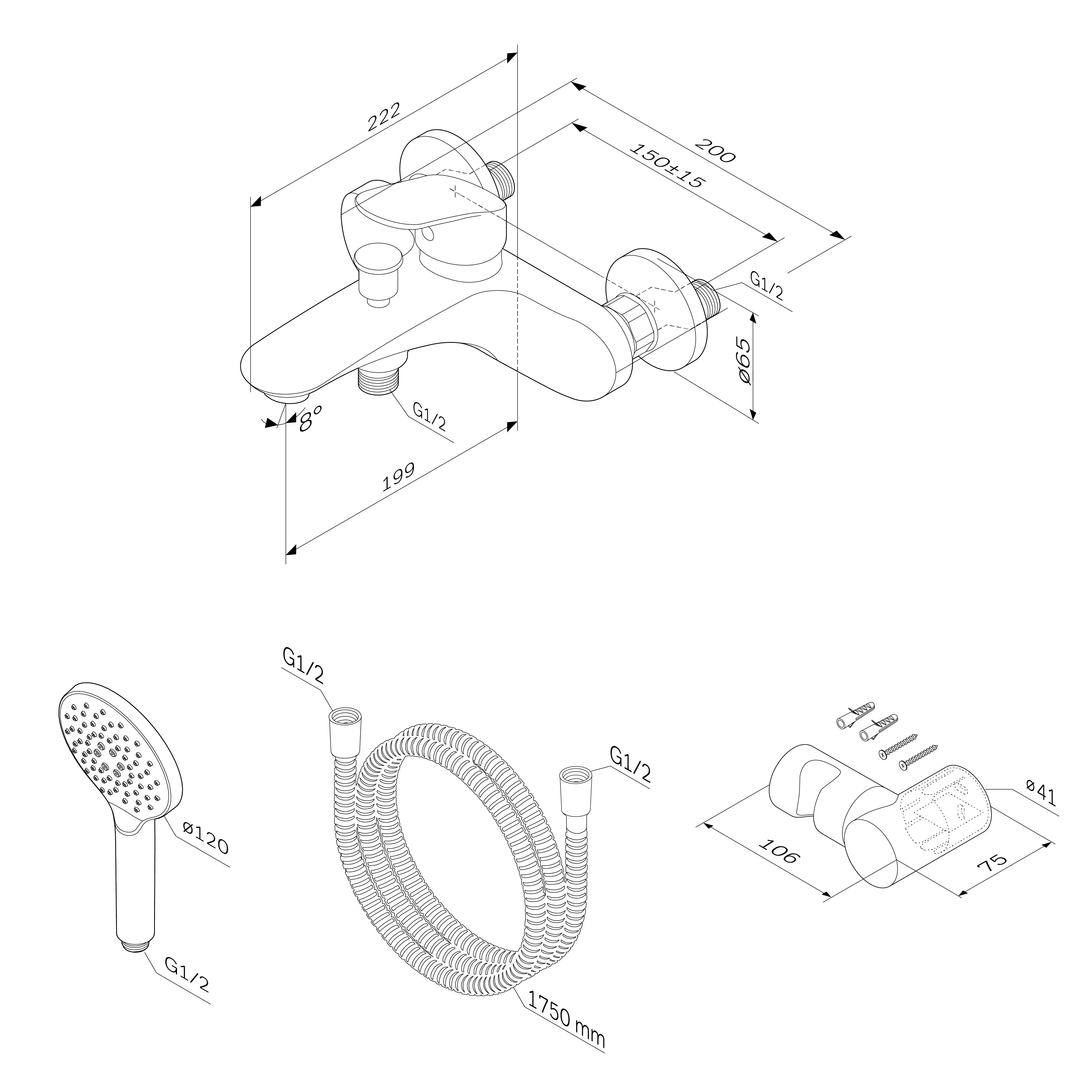 - Длина душевого шланга: 1750.0