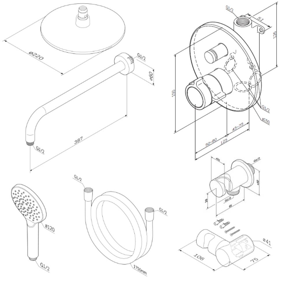 - Длина душевого шланга: 1750.0
