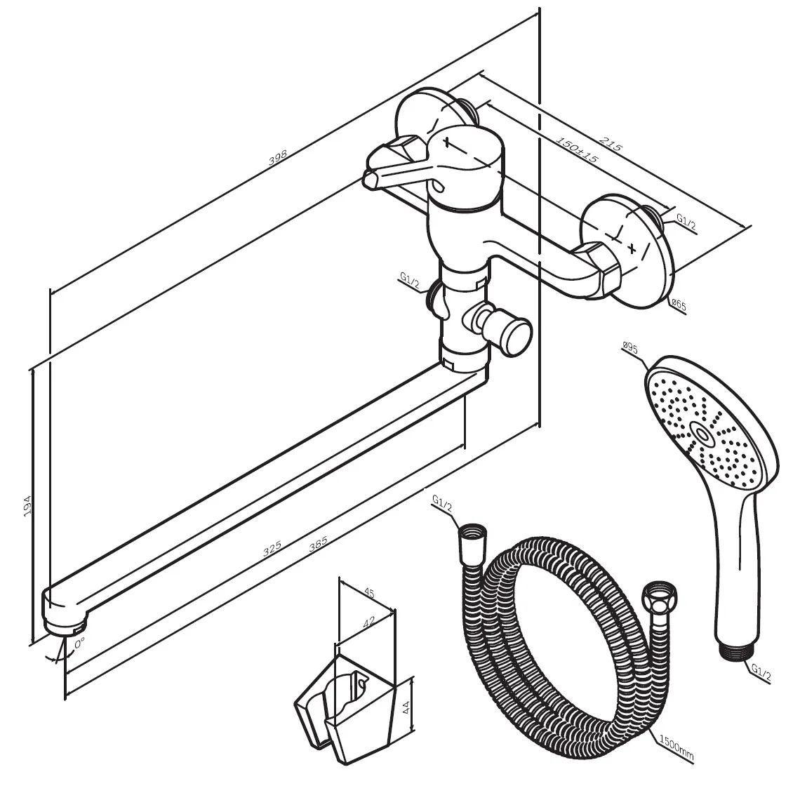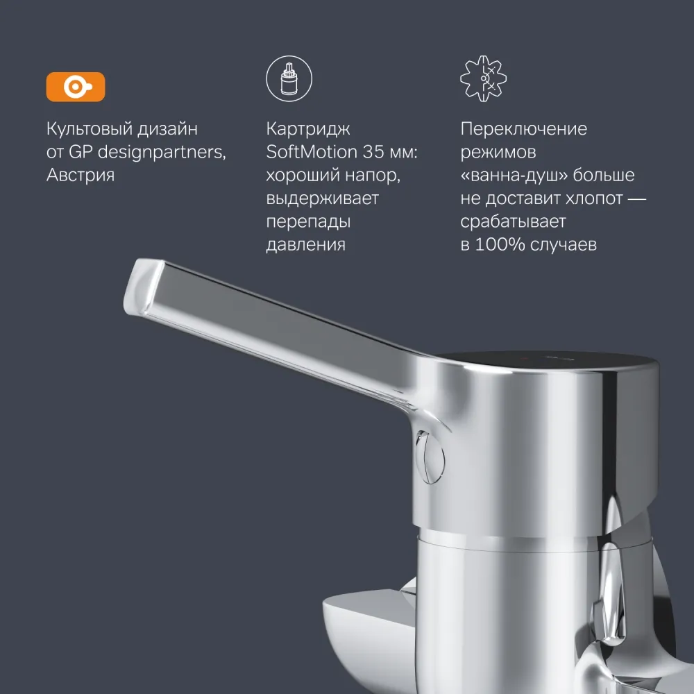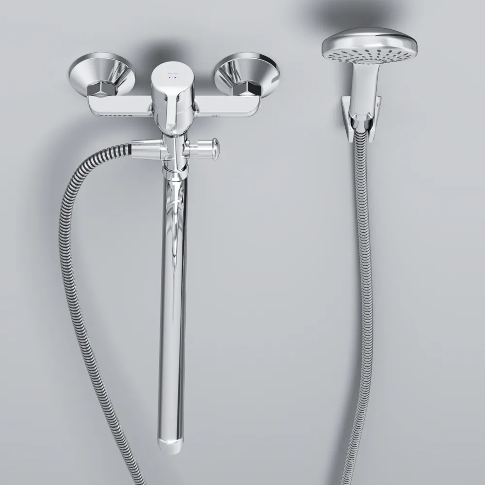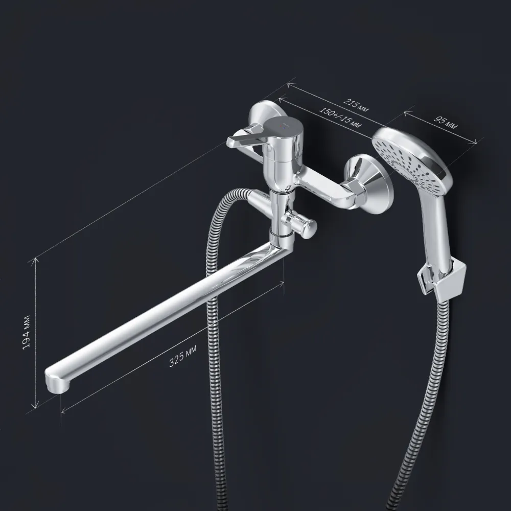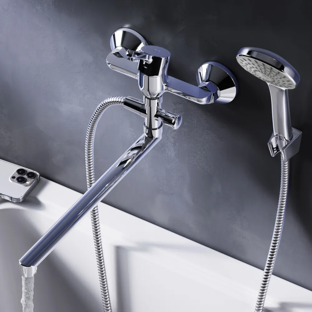 Стильное универсальное решение для ванной комнаты - качественный смеситель для ванны и душа с длинным поворотным изливом с душевым набором.