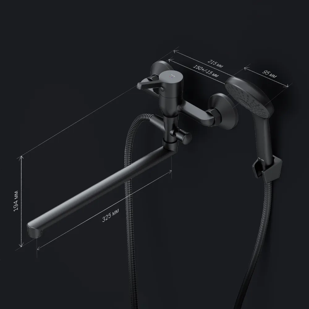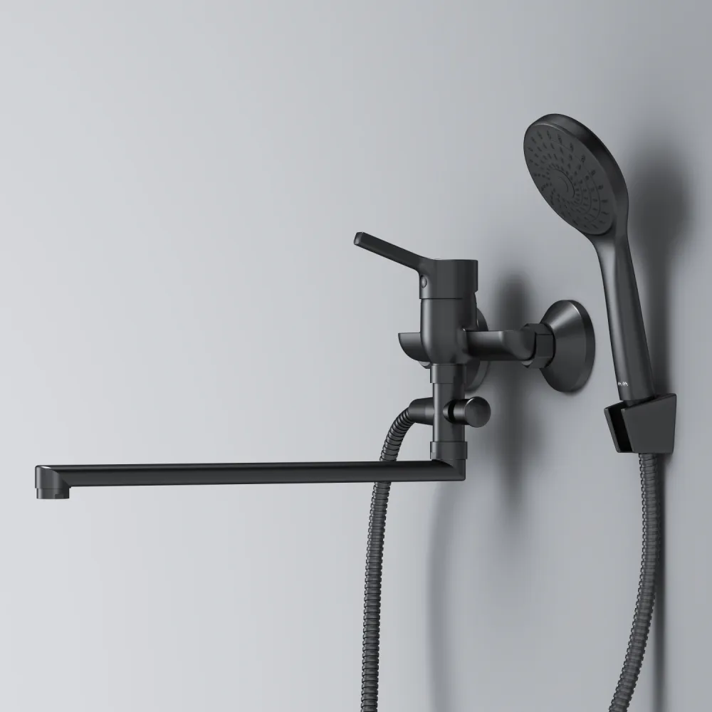 Стильное универсальное решение для ванной комнаты - качественный смеситель для ванны и душа с длинным поворотным изливом с душевым набором.