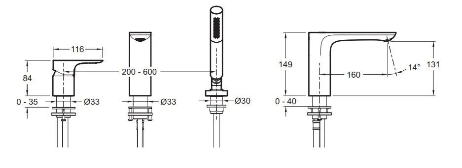 Смеситель на борт ванны Jacob Delafon Aleo E72292-CP на три отверстия.