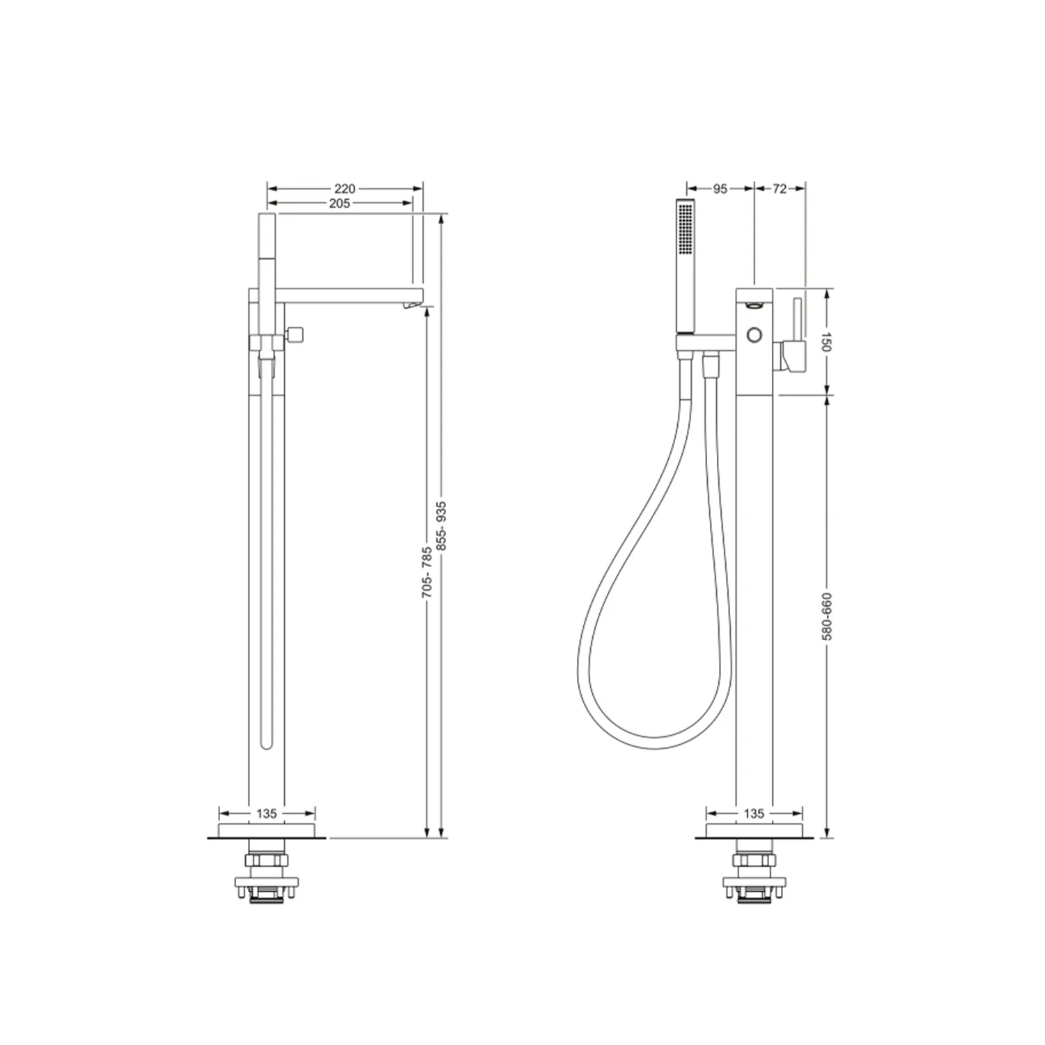 Напольный монтаж, металлическая лейка с системой очистки от известковых отложений и обратным клапаном