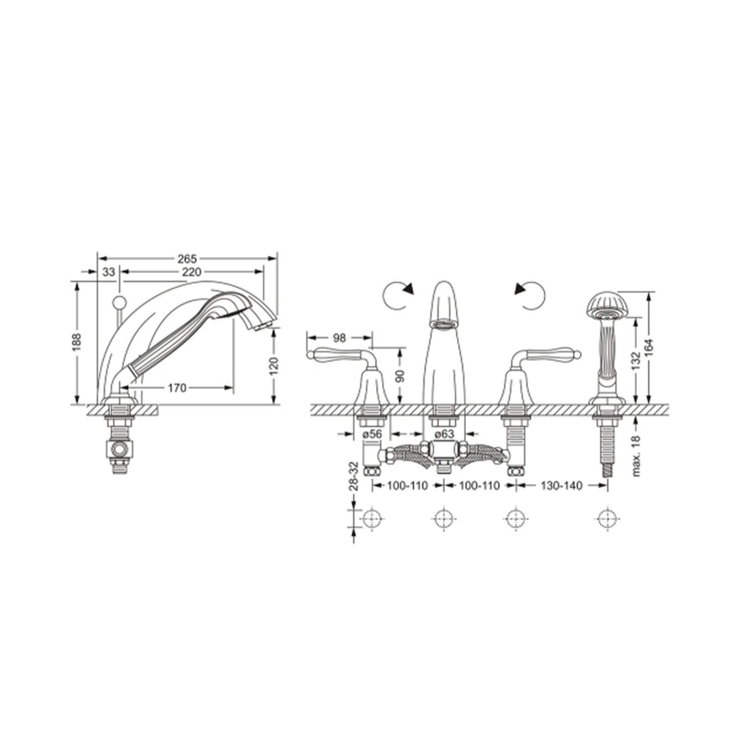 - переключение ванна/душ