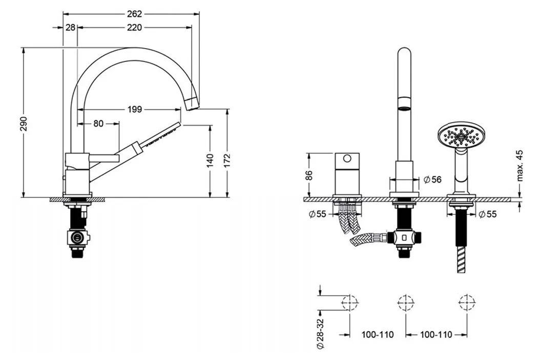 - расход воды ручного душа 13,2 л/мин при 3 барах