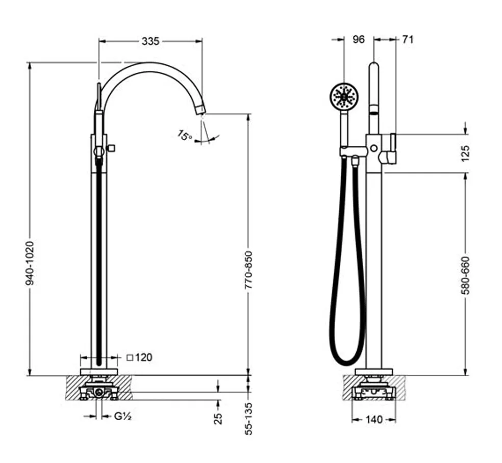 - пропускная способность ручного душа 13,2 л/мин при 3 барах