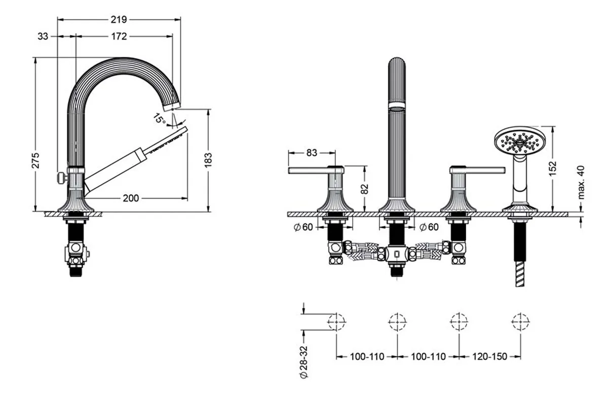 - пропускная способность ручного душа 13,2 л/мин при 3 барах