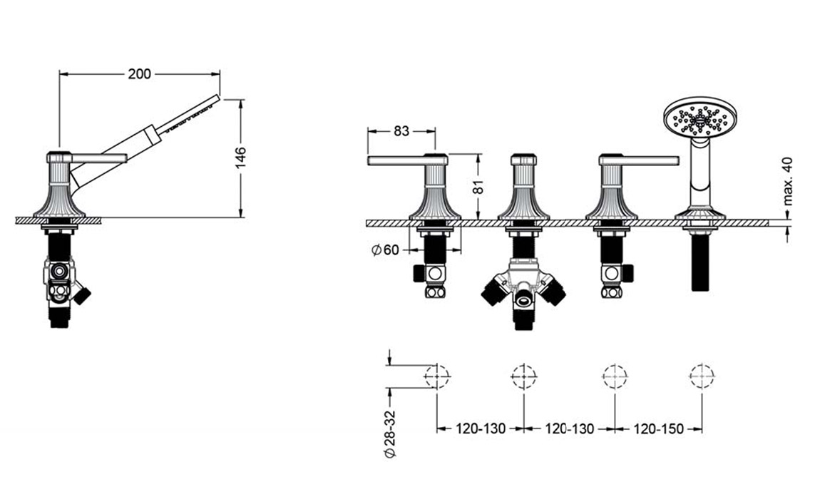 - пропускная способность ручного душа 13,2 л/мин при 3 барах