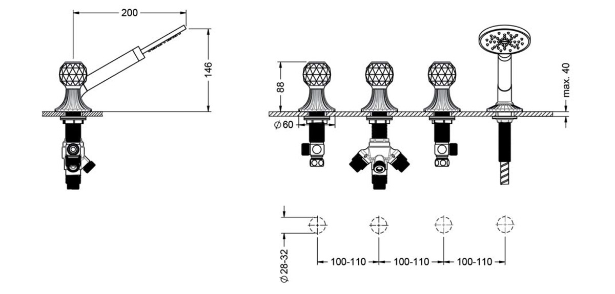 - пропускная способность ручного душа 13,2 л/мин при 3 барах