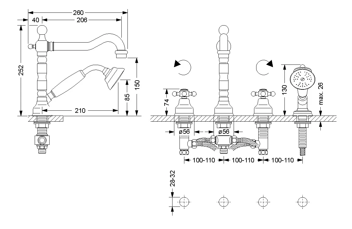 - пропускная способность ручного душа 22 л/мин при 3 барах