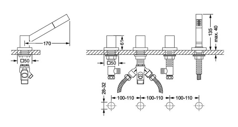 - пропускная способность ручного душа 24 л/мин при 3 барах