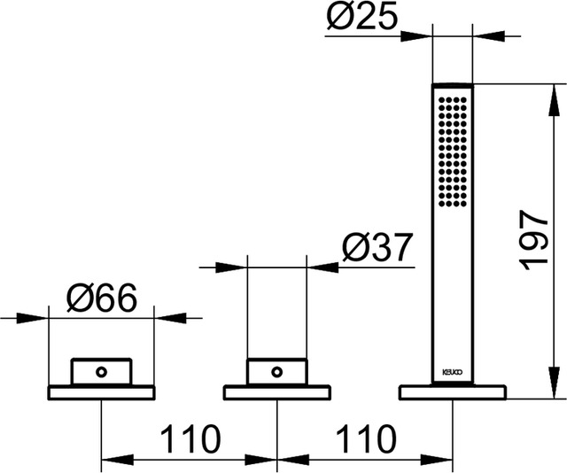 Смеситель для ванны Keuco Edition 400 51530010500 на 3 отверстия, хром