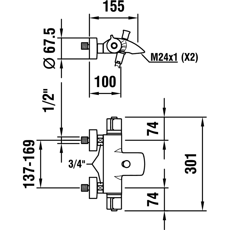 Смеситель для ванны Laufen Сurvepro 3.2370.7.004.145.1 с термостатом Хром