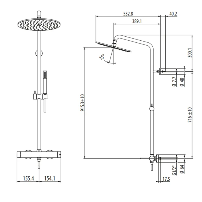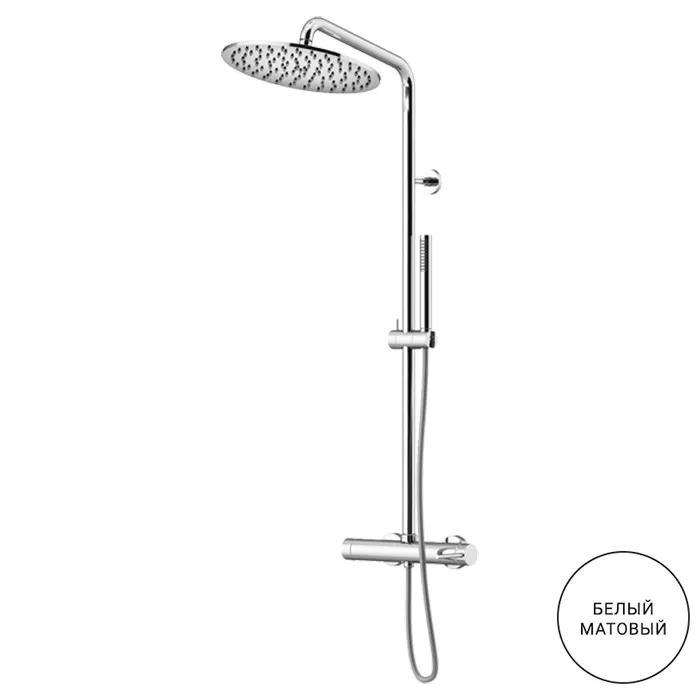 Смеситель для ванны монокомандный настенный Gattoni Circle One ручной лейкой и верхним душем 250, bianco opaco 9095/PDBO