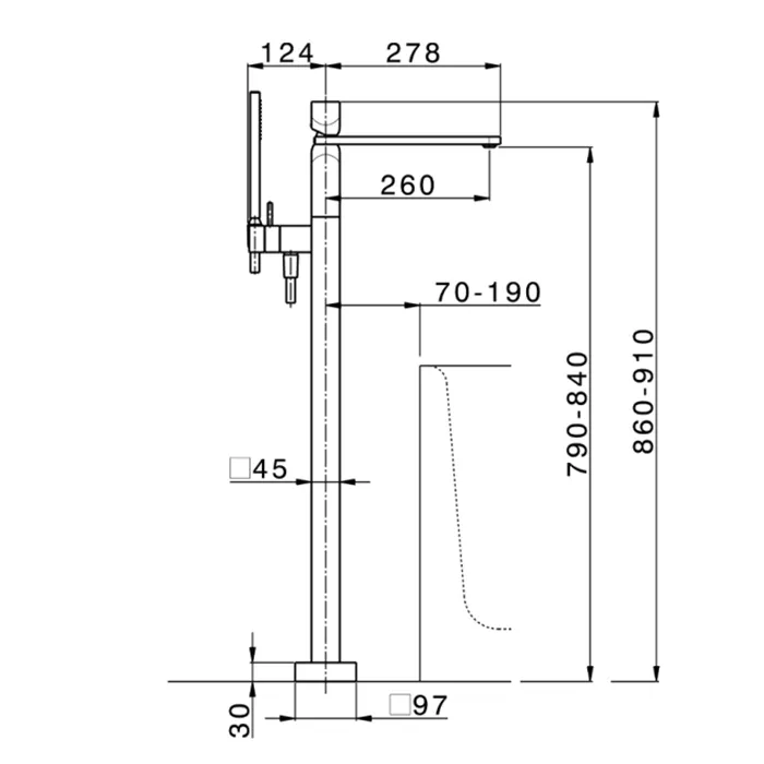 Смеситель для ванны напольный Cisal Hi-Rise однорычажный, с изливом и ручным душем, внешняя часть, хром RI01420421