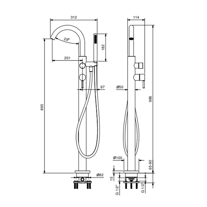 Смеситель для ванны напольный Fantini Nostromo излив 201, внешняя часть, Matt Gun Metal PVD 50 P5 E880B