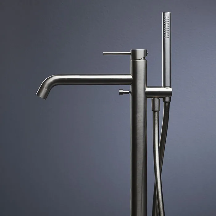 Смеситель для ванны напольный Newform X-steel 316 излив 243, в комплекте руч. душ, шланг, без встраиваемой части, для 27819, INOX 69684EX.50.050