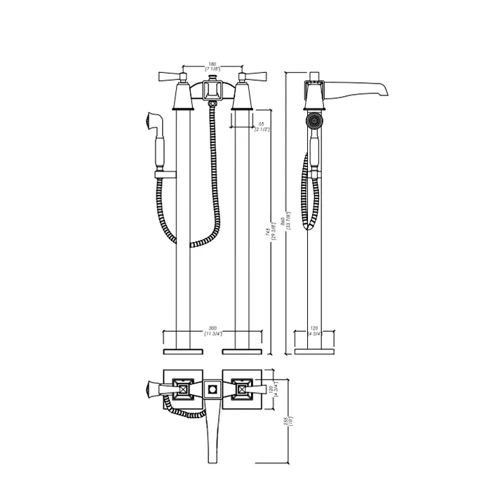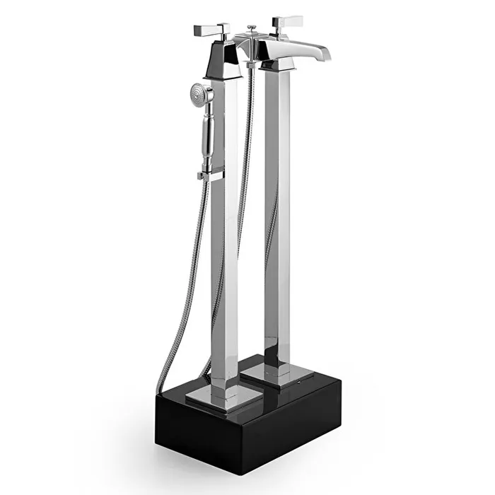 Смеситель для ванны напольный с ручной лейкой Devon&Devon Vip Time ручки из черного хрусталя хром пара 3VPTIME235CRNE