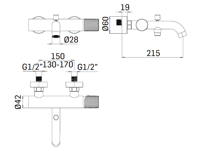 Смеситель для ванны настенный c душевым гарнитуром Mamoli TUTTODUNPEZZO 1710FB30002A