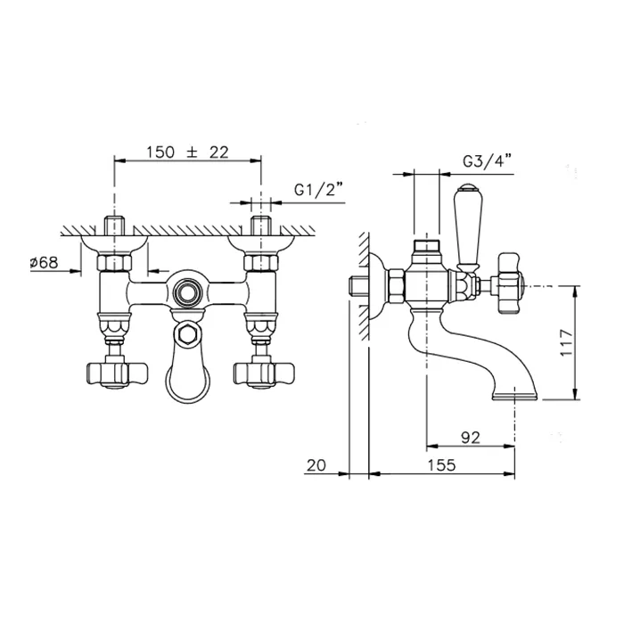Nicolazzi 1400BZ18 Смеситель для ванны под душевую стойку DAMES ANGLAISES