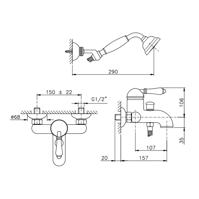 Nicolazzi 3401BZ76 Смеситель для ванны со стены P.M.B.