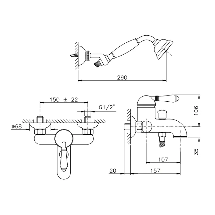 Смеситель для ванны Nicolazzi Petit Mont Blanc со стены 3401CR76