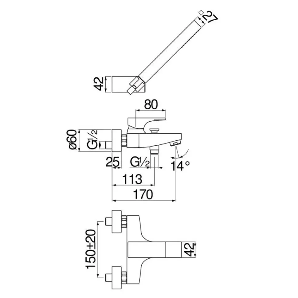 SE124110CR SEVEN смеситель для ванны с душевым набором